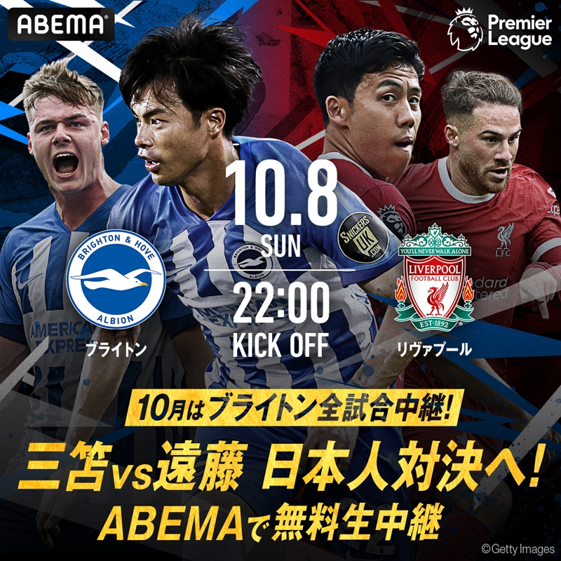 9節のマンチェスター・シティ戦はABEMAプレミアムだが、8節のリヴァプール戦と10節のフラム戦は無料での配信となる。特にリヴァプール戦は遠藤航との日本人対決に注目が集まる。