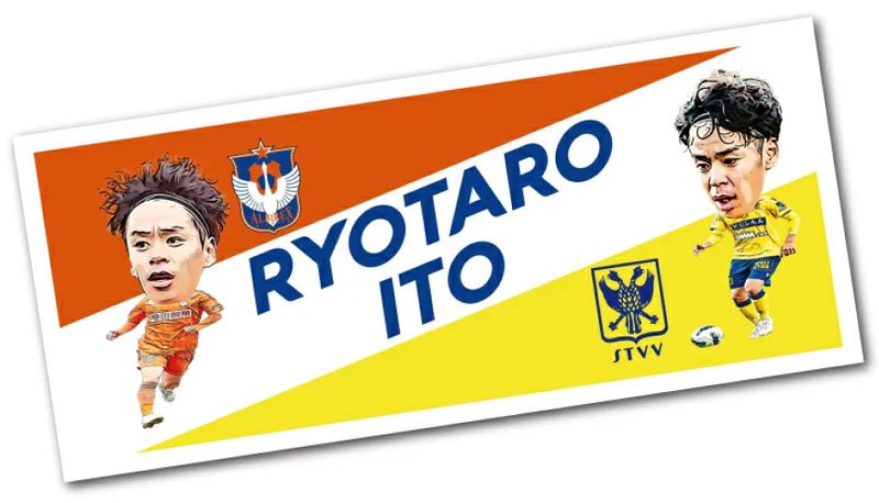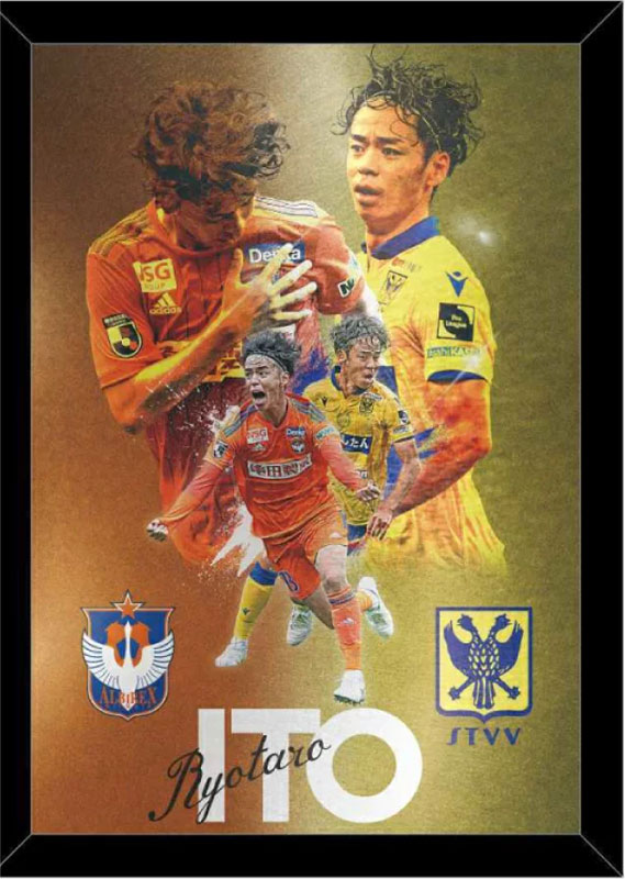 STVVと新潟での姿をグラフィックに。ひとつのフレームの中で躍動感あふれる2人の伊藤選手が共演する贅沢なプレミアムアイテムだ。