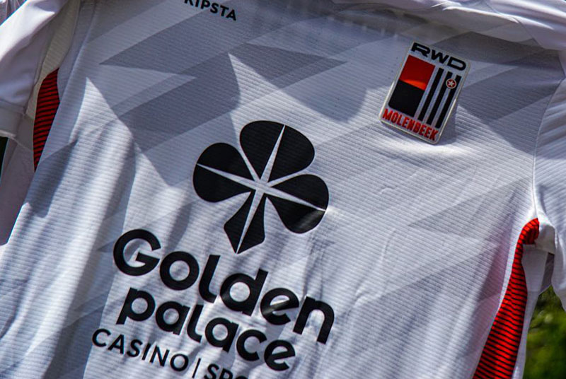 胸スポンサー「GOLDEN PALACE CASINO SPORTS」はオンラインカジノのいわゆるギャンブル系企業。同じベルギーリーグではセルクル・ブルッヘもこのロゴマークを付けている。