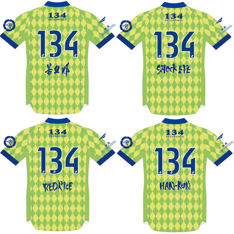 背番号はレーベル名の“134”で固定。番号下にはグループ名の「湘南乃風」と、メンバー4人のネーム「若旦那」「RED RICE」「SHOCK EYE」「HAN-KUN」の5パターンから選べる。
