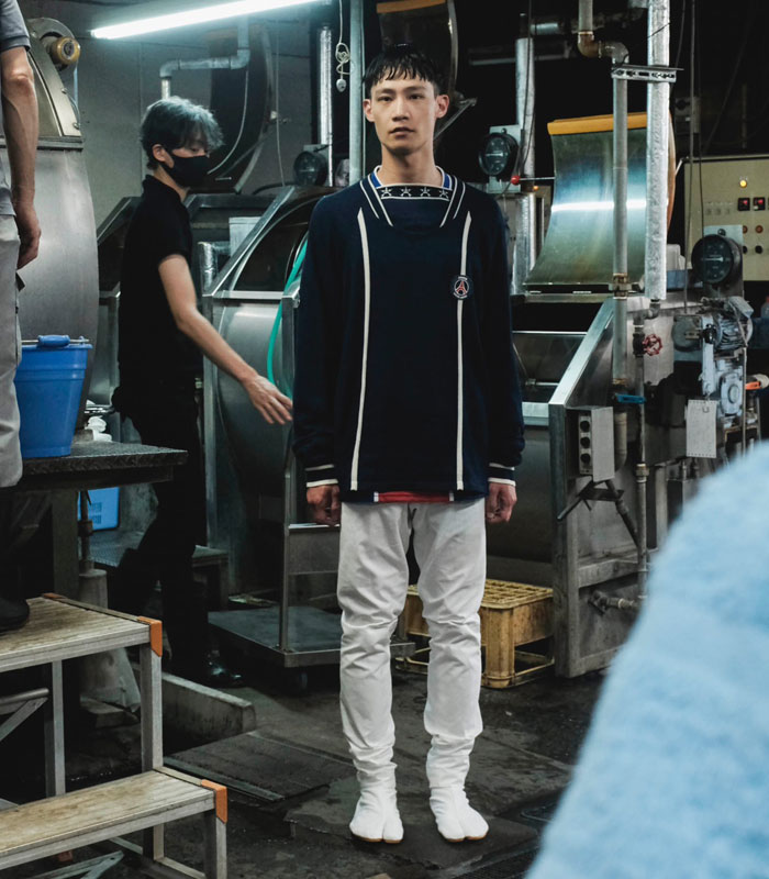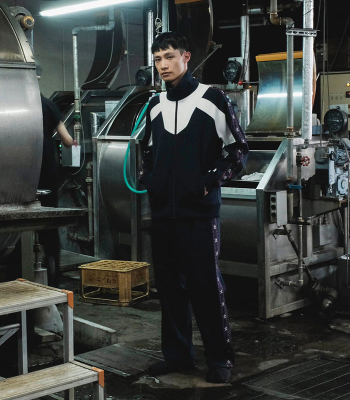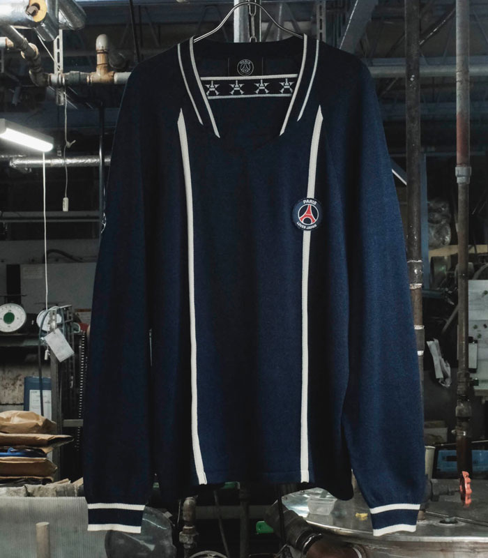 今回はPOGGY氏が考える定番アイテムであるダック地のセットアップをモチーフにした後染めのセットアップや、ヴィンテージライクな後付けフードのパーカー、PSGの90年代ユニフォームやウェアからインスパイアされたニット、トラックスーツをラインナップしている。