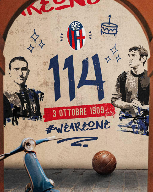 1909年10月3日に創設されたボローニャは今年で114周年に。その記念日に発表したサードユニフォームがクラシックなデザインではなく、デジタル的で新感覚のスタイルというところが興味深い。