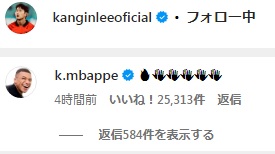 イ・ガンインをかわいがってたネイマール(現アル・ヒラル)はまだ反応していないようだが。