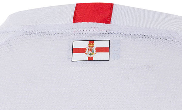 背面の首元にはウエスカ県の旗をプリント。アウェイユニフォームの“白地に赤い十字”のデザインは、この旗をモチーフとしている。
