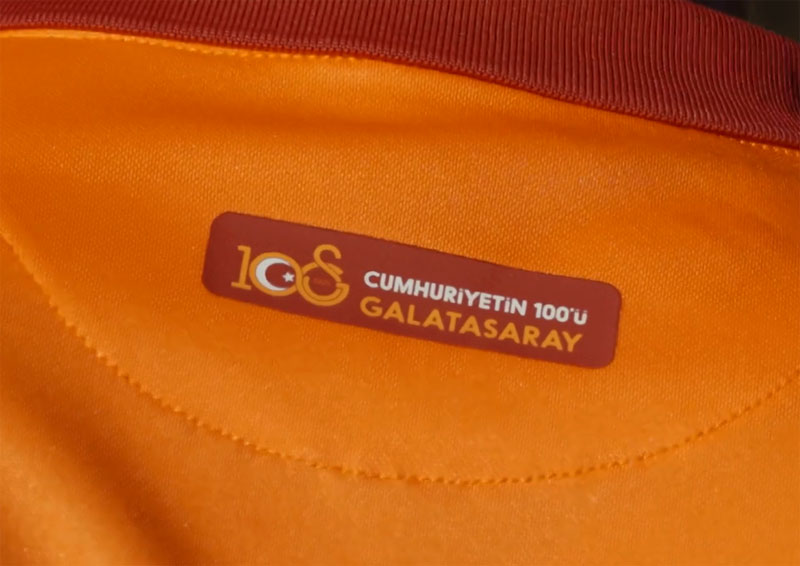 背面首元には建国100周年を祝うタグを装着。“100”の文字にはトルコ国章とガラタサライのエンブレムを組み合せたデザインだ。