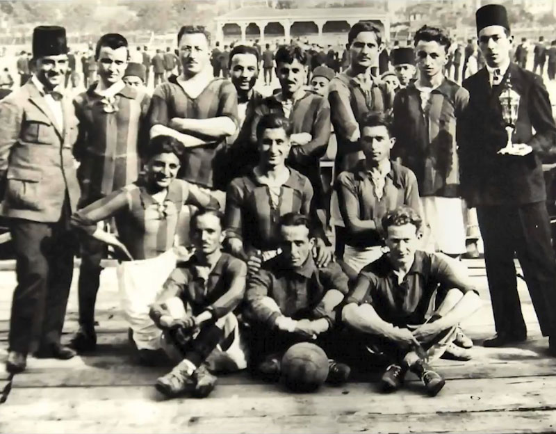 クラブがプロモーション動画の中で登場させた古い写真。これはトルコ建国当時のチームを写した1枚のようだ。今回の100周年モデルと同様に大きな襟が付き、シャツのセンターに濃い色のストライプを走らせているのが確認できる。
