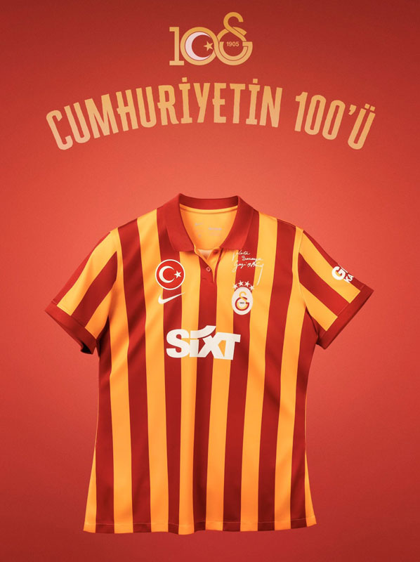 トルコ共和国の建国100周年記念ユニフォームは、ガラタサライの公式オンラインストアで販売中。