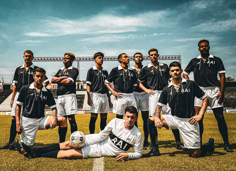 今回はレトロデザインだが、通常のユニフォームは名門サントスのような白黒縦じまや白基調のデザインを使用。もちろん左胸のエンブエムも別に存在する。