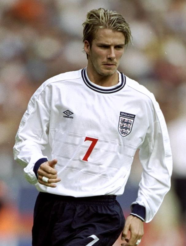 90年代後半といえばイケメンのデヴィッド・ベッカムが最もイケメンだった時代。貴公子に美しいユニフォームという組み合せもまた華やかであった。