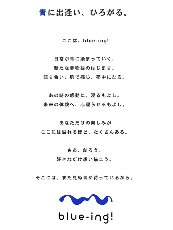 今後、SNS をはじめとする様々なコミュニケーションツールで『blue-ing!』の情報を発信していくとのこと。