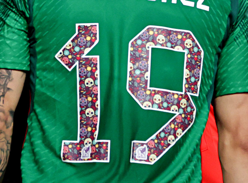 見た目のイメージとは異なり非常に意味深いデザインである「死者の日」仕様の背番号。残念ながら一般販売の対応はなさそうだ。