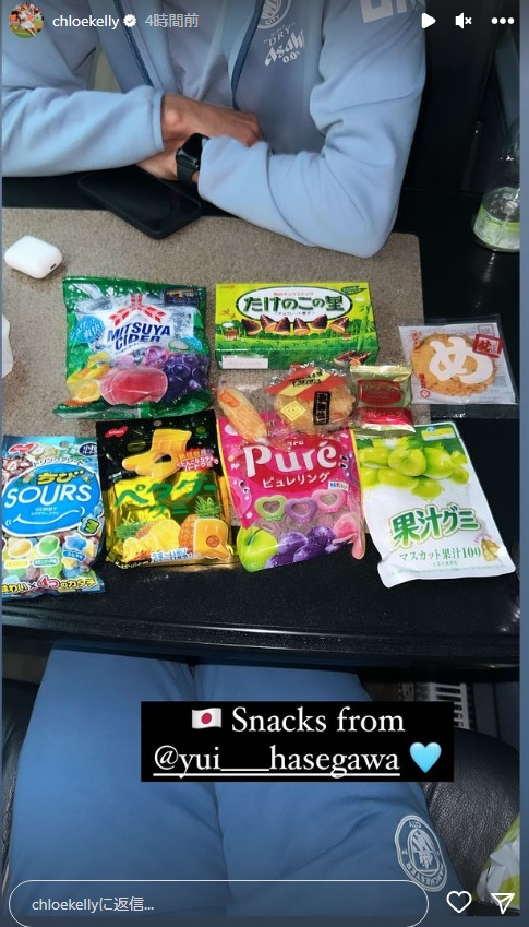 その長谷川は先日にはチームメイトたちに日本のお菓子を差し入れしていた。