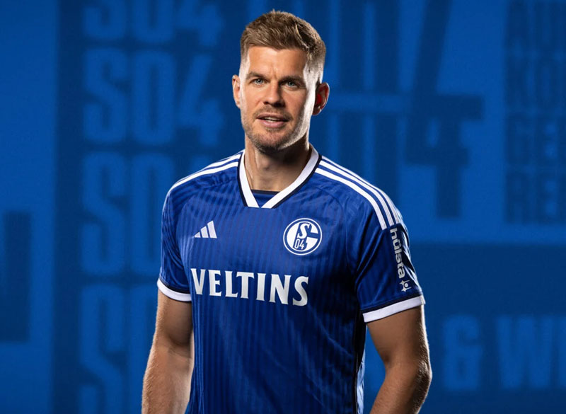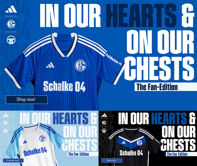 23-24シーズンの「VELTINS」ロゴ入りユニフォームは、クラブ公式オンラインストアやadidasオンラインストアで販売中。「Schalke 04」のファン・エディションは、現在キッズサイズのみ購入可能だ。
