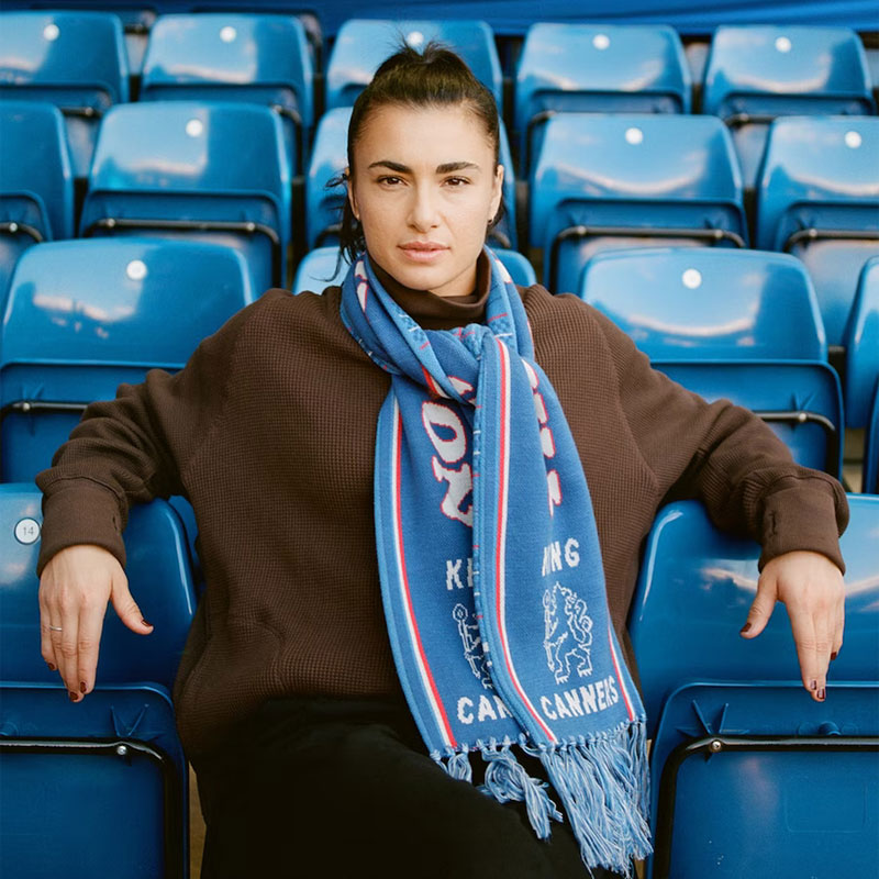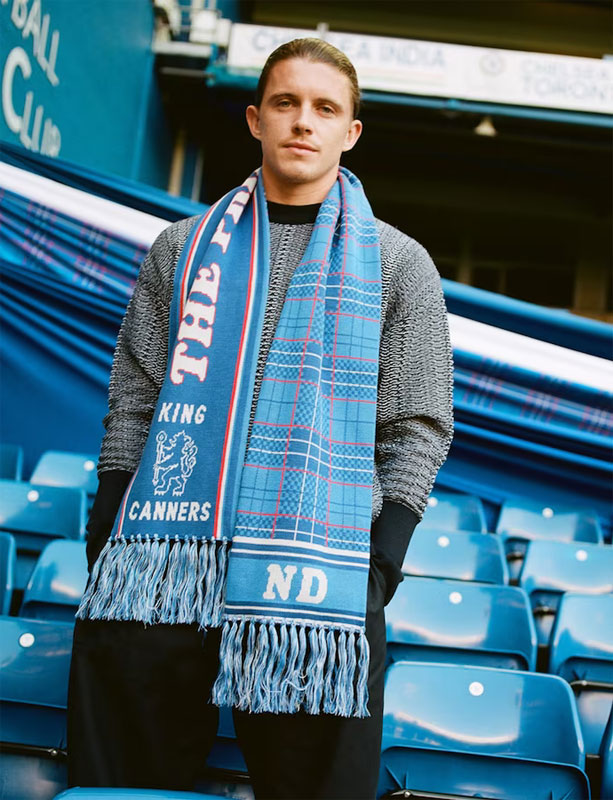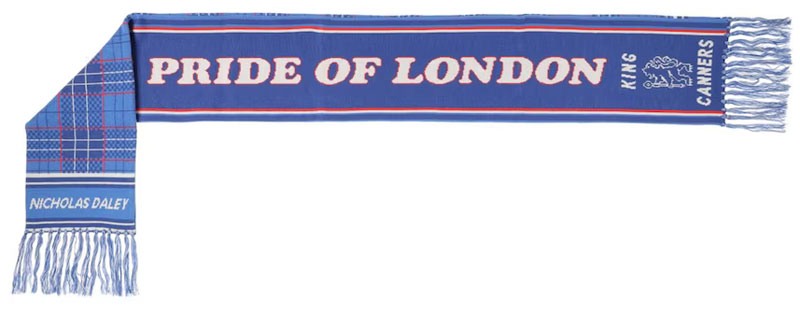 スカーフは片面に“THE PRIDE OF LONDON”を、反対面にはチェック柄をそれぞれデザイン。ポール・カノヴィルの愛称“KING CANNERS”と「NICHOLAS DALEY」のダブルネームを配する。