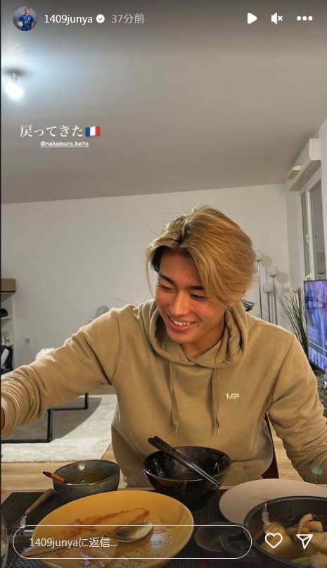 22日のトゥールーズ対スタッド・ランス戦は欠場したが、チームメイトである伊東純也が彼の様子をInstagramのストーリーに投稿していた。