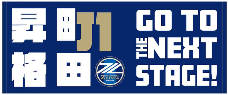 “GO TO THE NEXT STAGE”が熱いフェイスタオル。昇格決定後に選手たちが掲げたものと同じデザインなので、見るたびに胸熱となるに違いない。