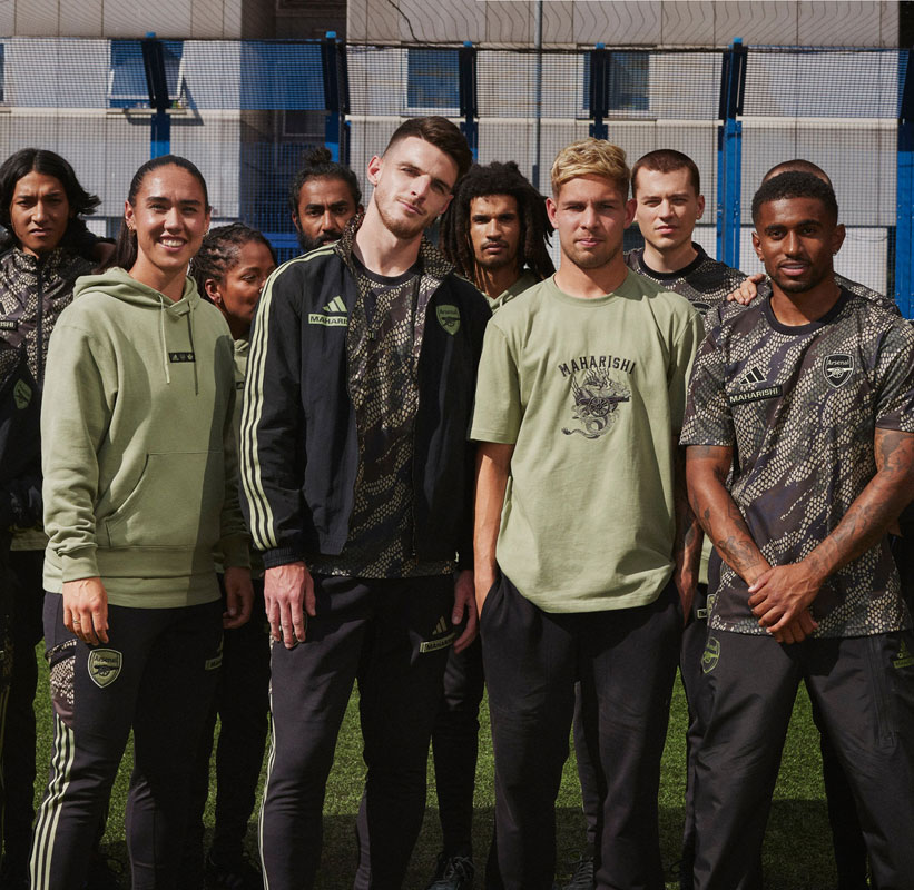 「アーセナル×Maharishi」のコラボ・コレクションは、クラブ公式オンラインストア、adidasオンラインストア他で販売中。海外では一部アイテムが早々に完売となったようだ。