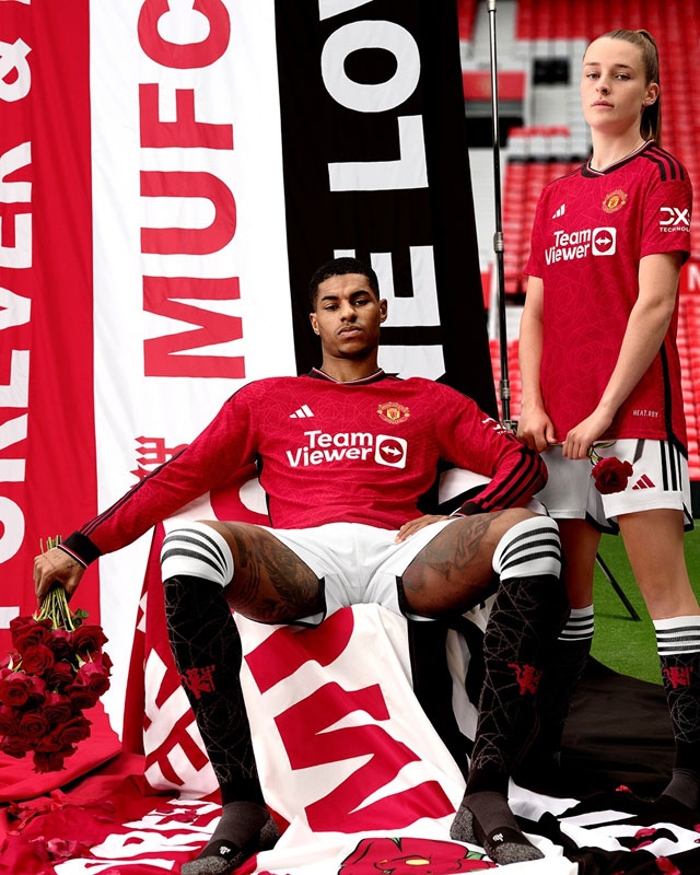 2023-24新ホームユニフォームは伝統のレッドを基調とし、19-20シーズン以来となるブラックが差し色に復活。レッドとブラックの力強いユナイテッドカラーが帰ってきたと歓迎された。