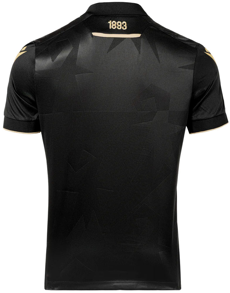 記念すべきクラブ創設130周年記念ユニフォームは、ブラックを基調に各部をゴールドで華やかに彩るデザイン。前面には濃淡をつけて左肩から右裾にかけて濃淡ブラックで斜めストライプを走らせる。