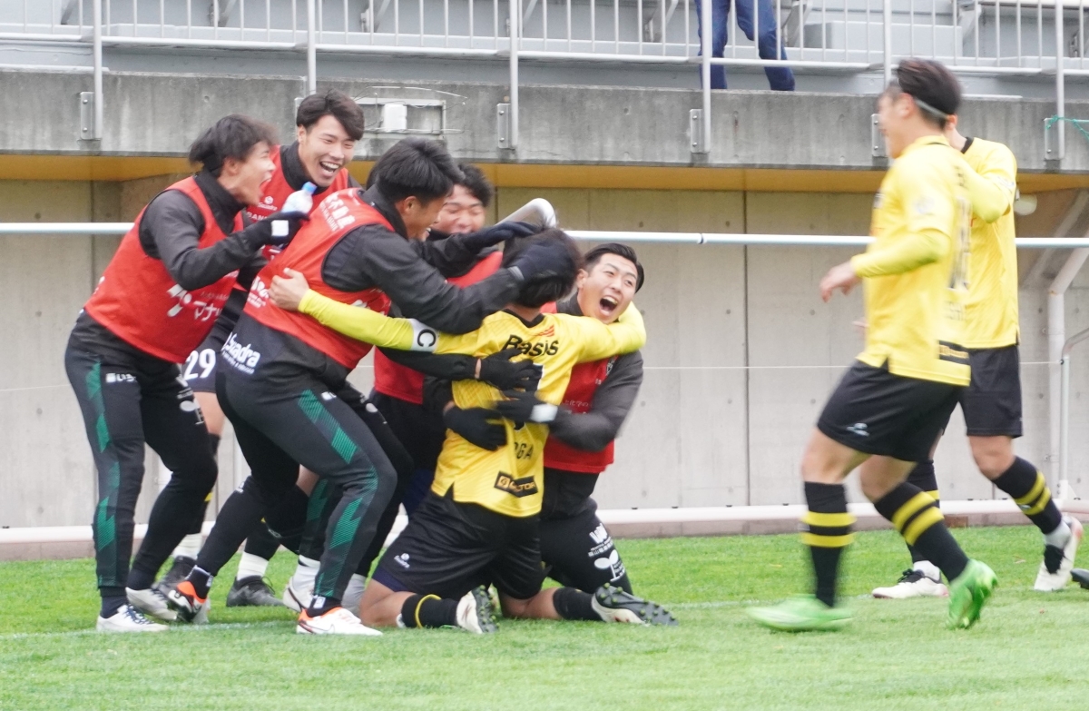 歓喜の輪を作った福山だったが、負けじと弘前は猛攻をしかける。同41分にMF板橋幸大がカウンターから左足で同点弾を奪って1-1の振り出しとなった。そのままスコアは動かず、福山と弘前はドロー決着となった。