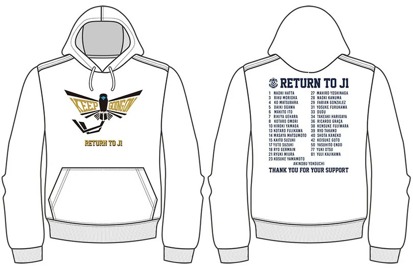 今回はTシャツ、パーカー、タオルマフラー、キーホルダーなど記念グッズの定番アイテムがラインナップ。それぞれに今季の選手たちの名が刻まれている。
