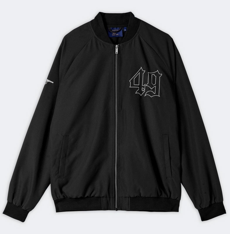 ゴシックフォントで無敗記録数「49」デザインしたブラックのボンバージャケット。画像は無いが背面にインヴィンシブルズのロゴをデザイン。素材はポリエステル100%。