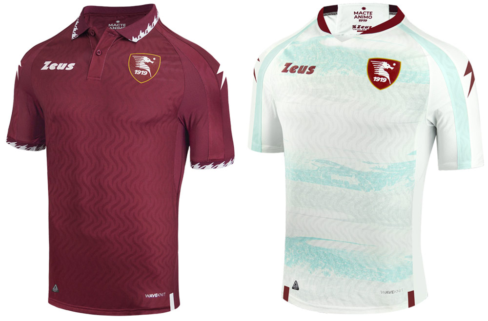 この2つのユニフォームは今季のホーム(左)とアウェイ。サレルニターナといえばワイレッド色のユニというカルチョ好きも多いのではないだろうか。初代ユニフォームは港町のチームらしくブルーとホワイトのストライプだったが、1940年代から現在の色を使用している。