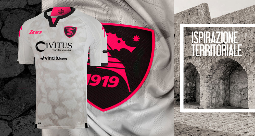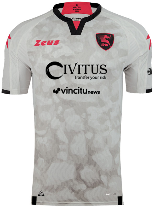 ライトグレーにピンクのコンビネーションが独特な雰囲気。サプライヤーのZeus Sportはイタリアのスポーツブランドで、サレルニターナとは2019-20シーズンからパートナーの関係にある。