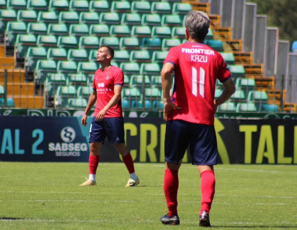 背中にも横浜FCと同じ「FRONTIER」のスポンサーロゴ入り。カズの背番号はオリヴェイレンセでも11番。シャツネームはもちろんKAZU!