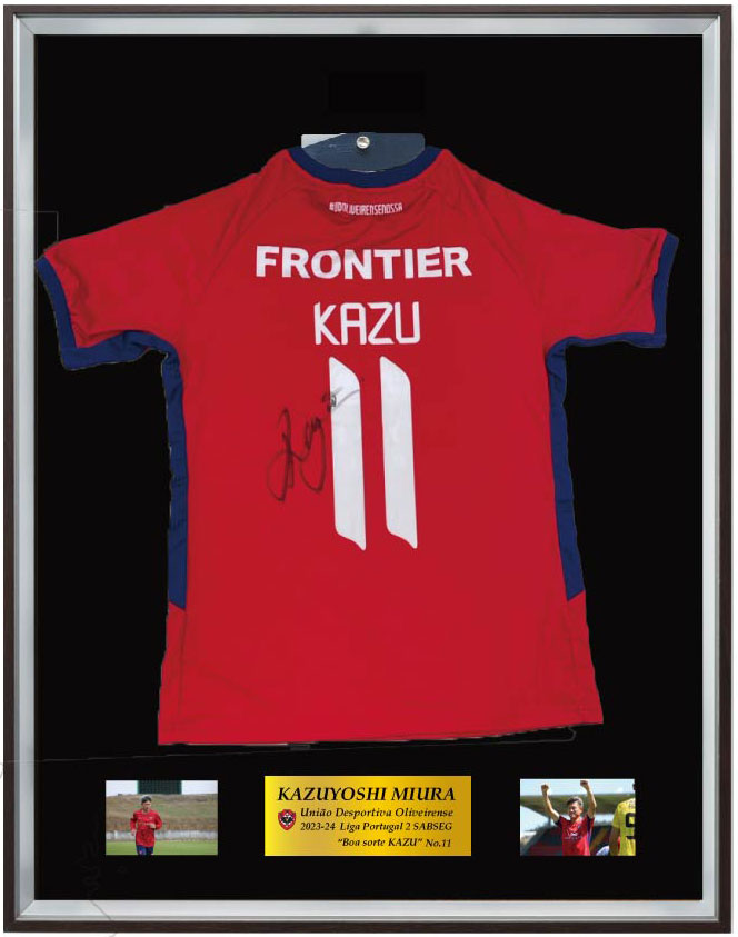 己への挑戦ともいえる55歳で海外へ渡り、56歳の今もポルトガルでボールを追う日々を過ごす。そんなカズの足跡が確かに刻まれているユニフォームが今回、額装付きで入手可能となった。
