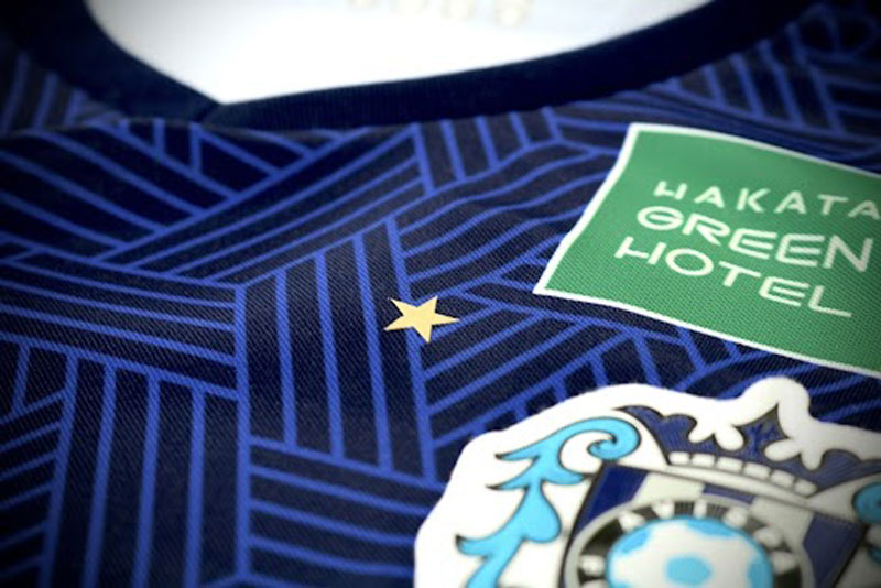 2024新ユニフォームのデザインは「選手とサポーターが共にスタジアムをアビスパ一色に染めるユニフォーム」がコンセプト。玄界灘のごとく濃く深いネイビーは、さらなる高みを目指して戦う勝利への執念の深さを表現している。