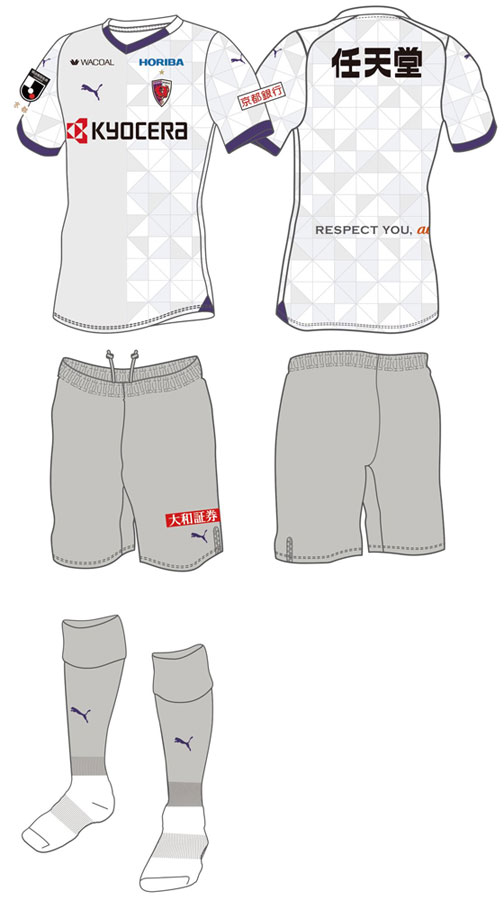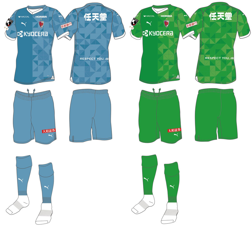 画像を見る限り各部のスポンサーは、胸に「KYOCERA(京セラ)」、鎖骨左に「HORIBA」、鎖骨右に「WACOAL」、背中上に「任天堂」、背中下に「au」、左袖に「京都銀行」、パンツ前面に「大和証券」。スポンサー企業については変更の可能性もあるかもしれない。