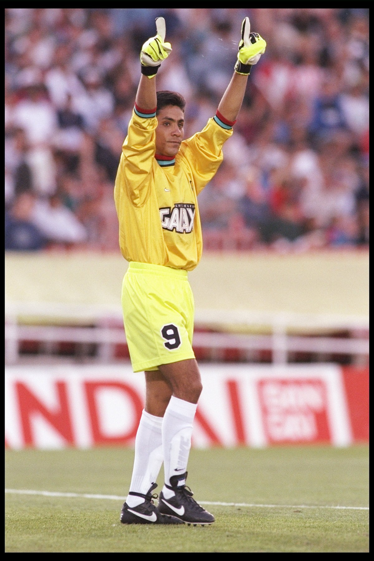 エキセントリックなゴールキーパーとして知られたホルヘ・カンポス。若い頃はストライカーとしてプレーしていたこともあり、「二刀流」の選手としてGKとしてもFWとしても出場した。