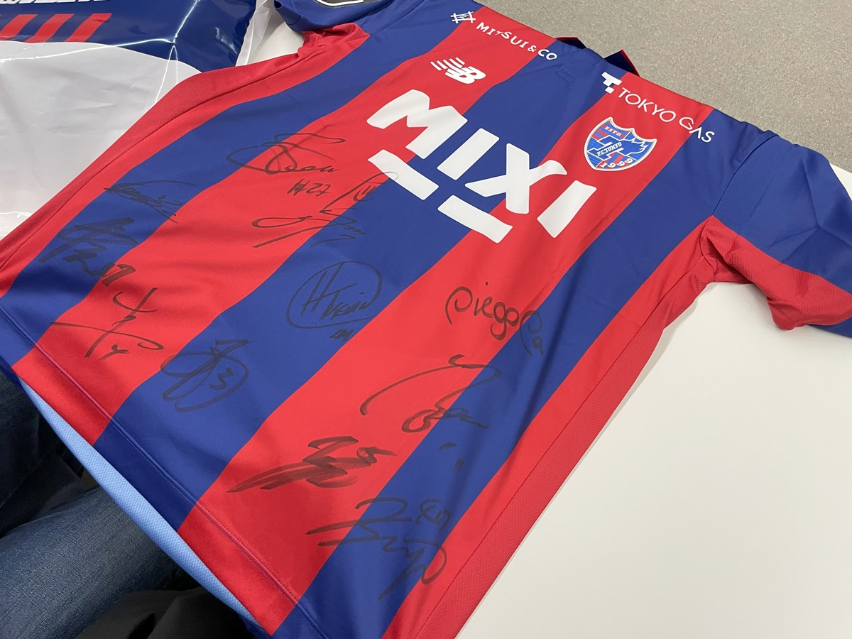 多数の応募があったというFC東京のスペシャル観戦。幸運にも当選した参加者には、クラブから選手のサイン入りユニフォームなどグッズが贈られている。