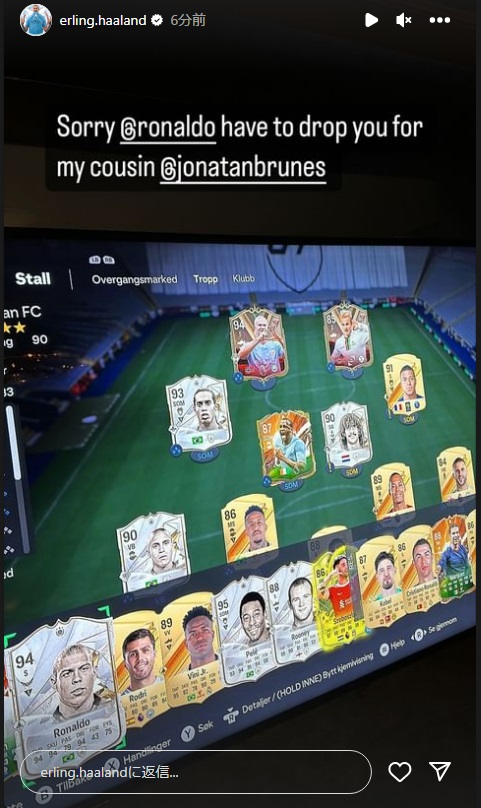 そんなハーランドはEA FC24のアルティメットモードで使っているチームをInstagramのストーリーで公開していたぞ。