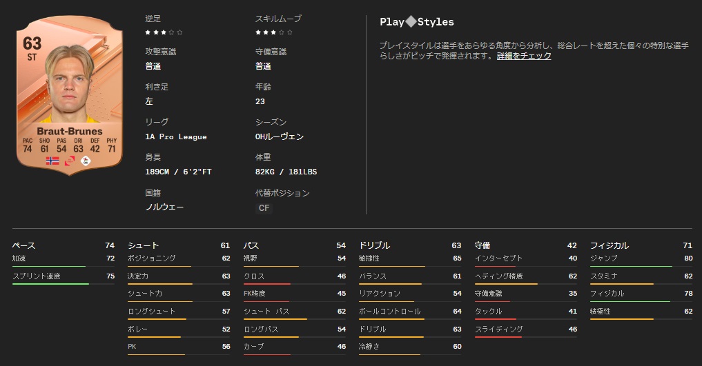 三竿健斗と同じベルギー1部ルーヴェンでプレーするブリュネスは、ハーランドと同じ大型レフティストライカー。