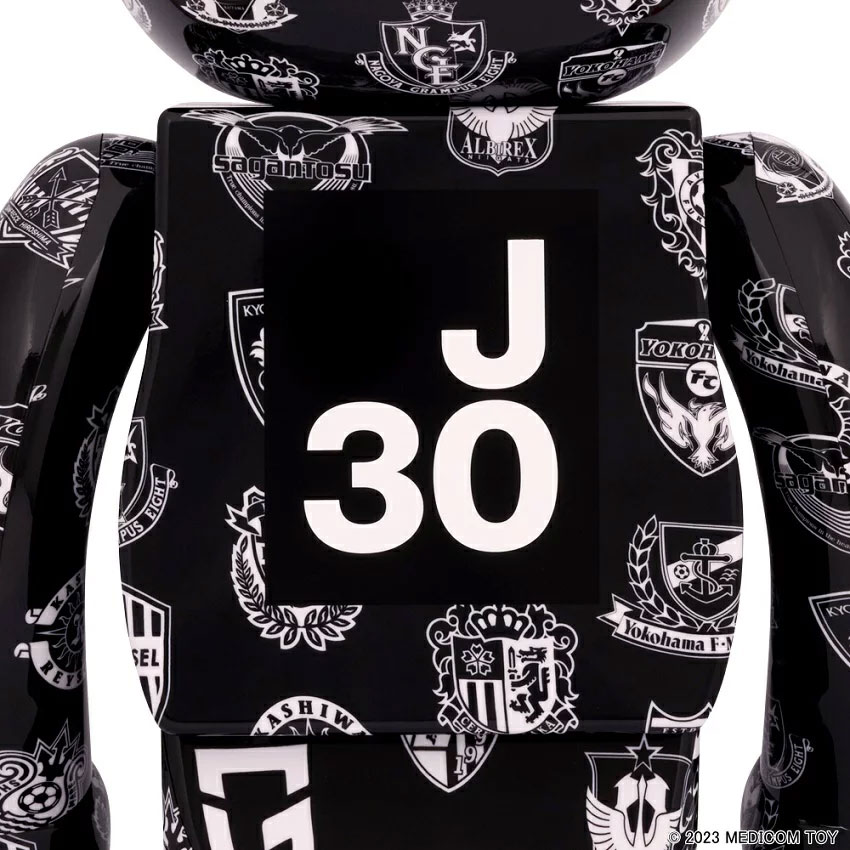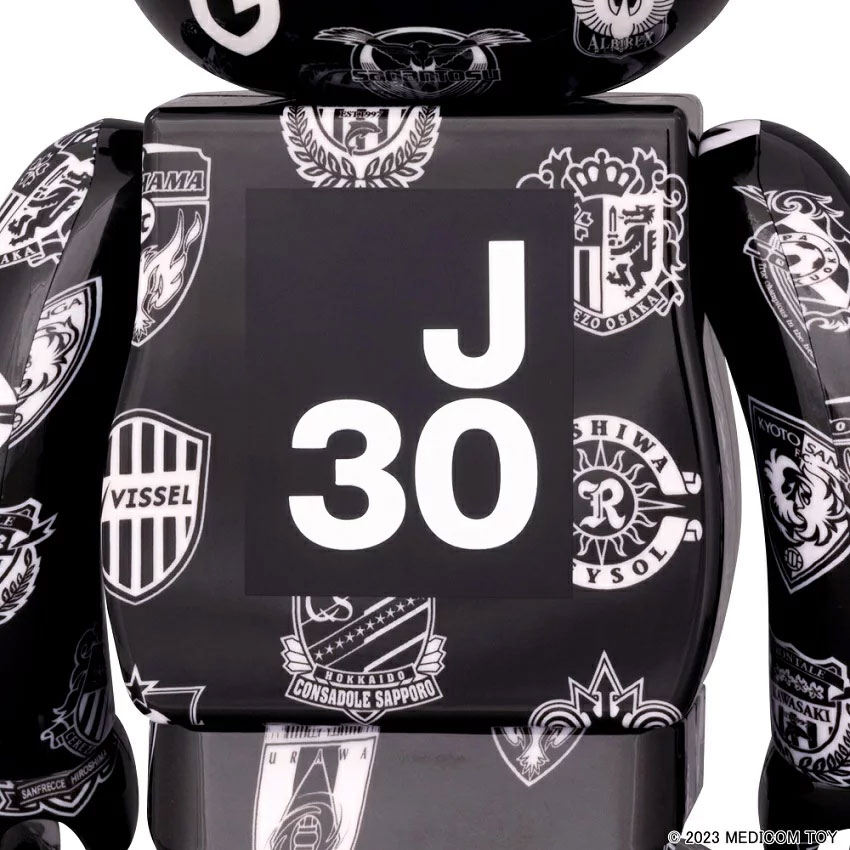 今回発売となるのは「100%と400%」と「1000%」の2種類。ベアブリックではサイズを「%(パーセント)」で表示する。それぞれJリーグ30周年記念で2023シーズンのJ1全18チームのエンブレムをデザインした特別バージョンとなる。