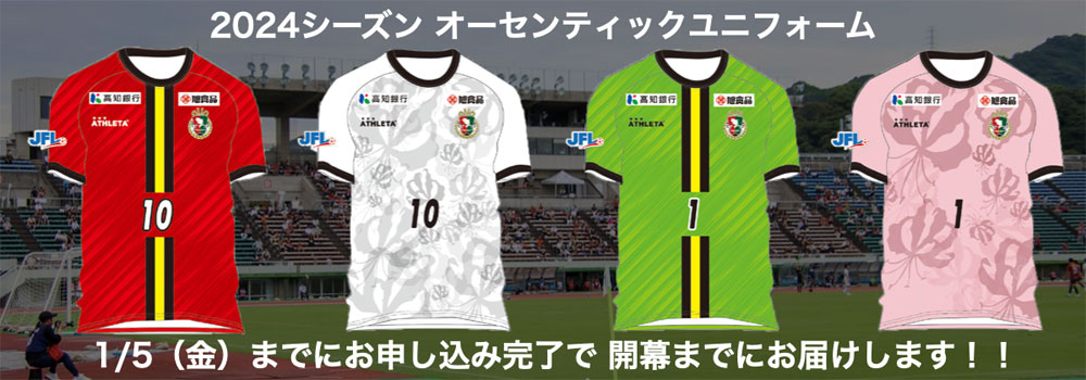 2024新ユニフォームはクラブ公式オンラインストアにて販売中。詳細については高知ユナイテッドSCの公式ウェブサイトまで。