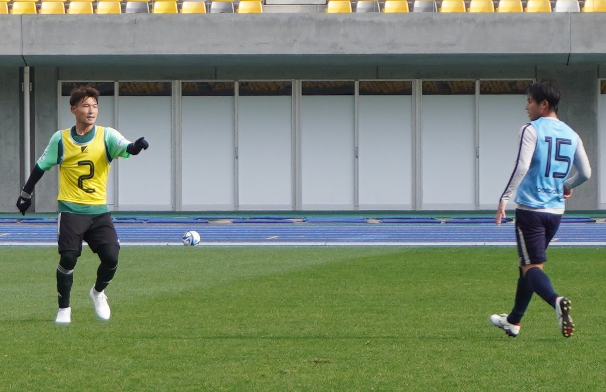 今季J3松本山雅満了のMF喜山康平(35)は12日に参加し、11対11のゲームで先読みを生かしたカバーリング、DFラインを統率するコーチングとリーダーシップを見せた。