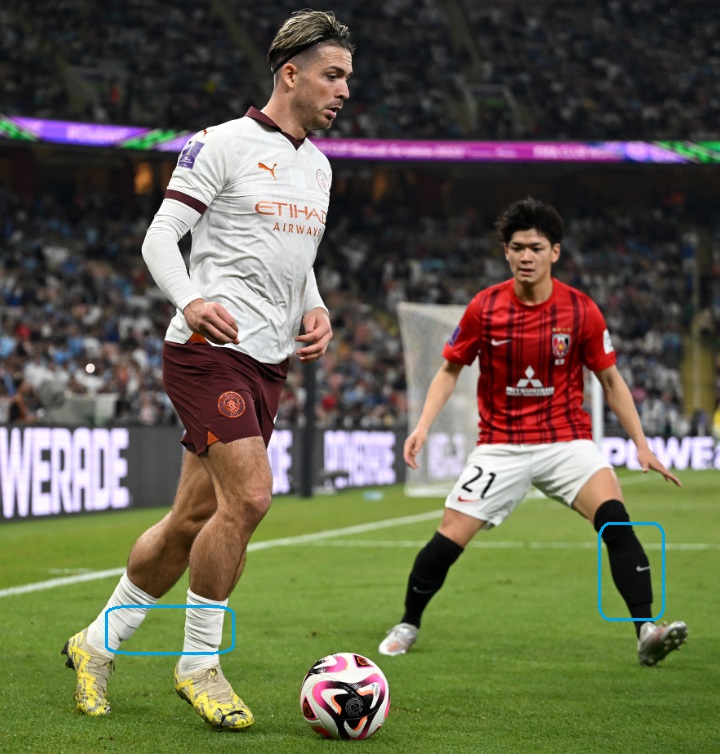 10番を背負うイングランド代表ジャック・グリリッシュは靴下をずり下げて履く選手として知られている。そのため、すね当ても極小サイズで、脛を守るという本来の意味はほぼなしていない。
