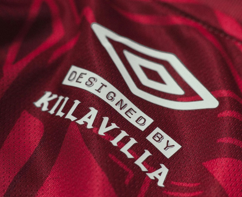 背面の首元にはUmbroとKilla Villaのダブルネームをデザイン。