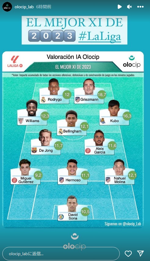 そうしたなか、AIを駆使する「Olocip」は2023-24シーズンのリーガ前半戦ベストイレブンを発表していた。