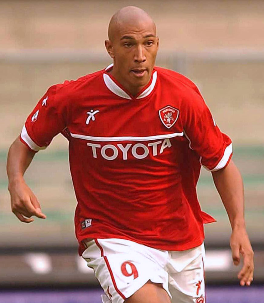 03-04シーズンで9番を背負ったスキンヘッドのアタッカーはジェイ・ボスロイド。ジュビロ磐田(2015-16年)や北海道コンサドーレ札幌(2017-21年)で活躍したイングランド人選手だ。