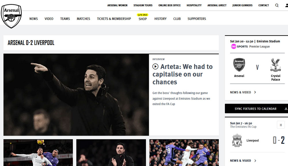 クラブ公式サイトも現在はこのように白黒を基調としたデザインにカラーチェンジ。男子チームは着用を終えたが女子チームは14日のFAカップでの着用を控えているため、その試合が終わるまではこの白黒デザインを継続するのかもしれない。