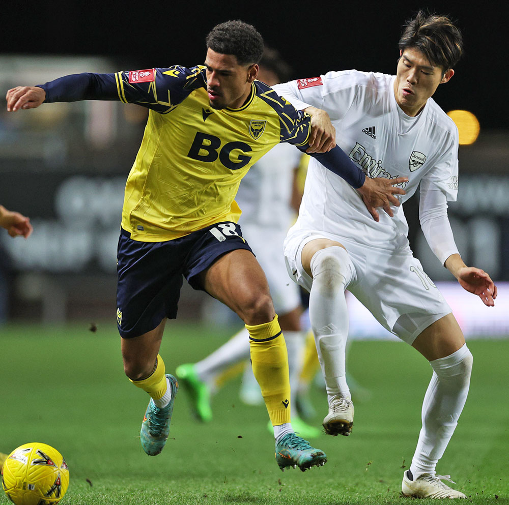 2度目は22-23シーズンのFAカップ3回戦で、2023年1月9日に敵地で行われたオックスフォード・ユナイテッド戦。各種ロゴは白黒に変更となった。この試合で冨安健洋はスタメン出場し、81分までプレーしている。