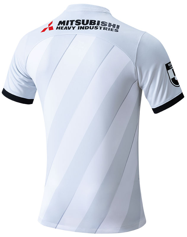 新アウェイユニフォームはホワイトを基調に、肩や袖、前後の斜めのグラフィックにライトグレーを採用。