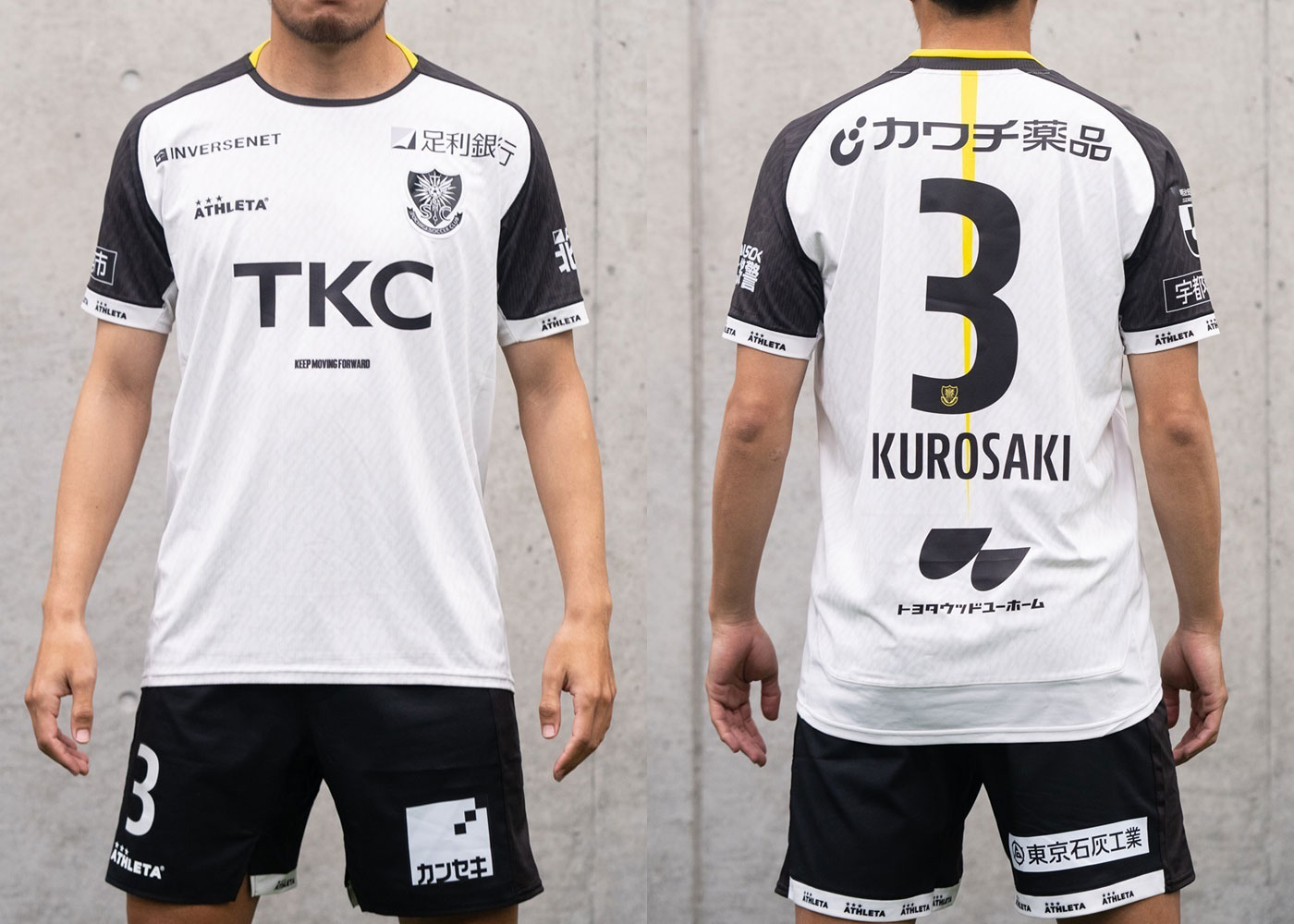 新アウェイユニフォームは、ホワイトを基調にブラックを組み合せた落ち着きのあるカラーコンビネーション。モノトーンの配色で力強さを表現している。背面中央に栃木県名物の“雷”をイメージしたイエローのラインを配置。