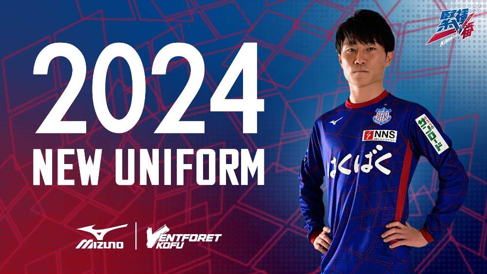 2024シーズンからはJリーグの統一フォント制が廃止になり、甲府はオリジナルのデザインを採用。背番号下部にエンブレムをプリントする。
