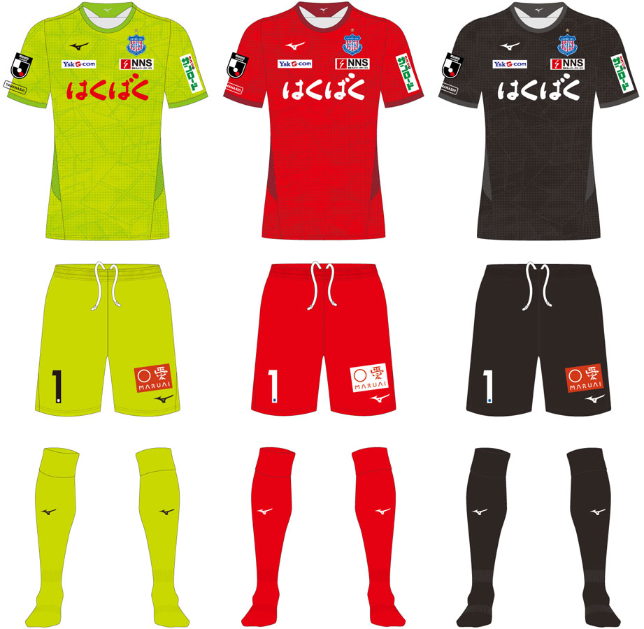 新ゴールキーパーユニフォームは引き続き3色展開。今回は1stにグリーン、2ndにレッド、3rdにブラックを採用している。