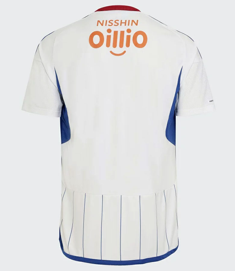 新アウェイユニフォームは歴代屈指の爽やかさを感じるデザインが登場。ホワイトを基調にブルーの極細ストライプを走らせる。